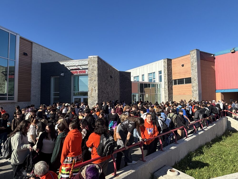 On Monday, September 29th, all RD Parker students went on a walk in honour of The National Day for Truth and Reconciliation. It began at 2:00, and happened during D&E blocks. Students were called down to the front of the school, where the walk began, and all students took off as a group. The walk took a route down towards the Bush Plane Monument by the Burntwood River. This monument is to acknowledge that these planes were used to transport Indigenous children to residential schools. After reaching the destination, students were invited to walk back to the school and enjoy a delicious meal of bannock and stew. Many students and staff wore orange shirts to show support, and lots of people showed off their beautiful cultural outfits, such as ribbon skirts or shirts.